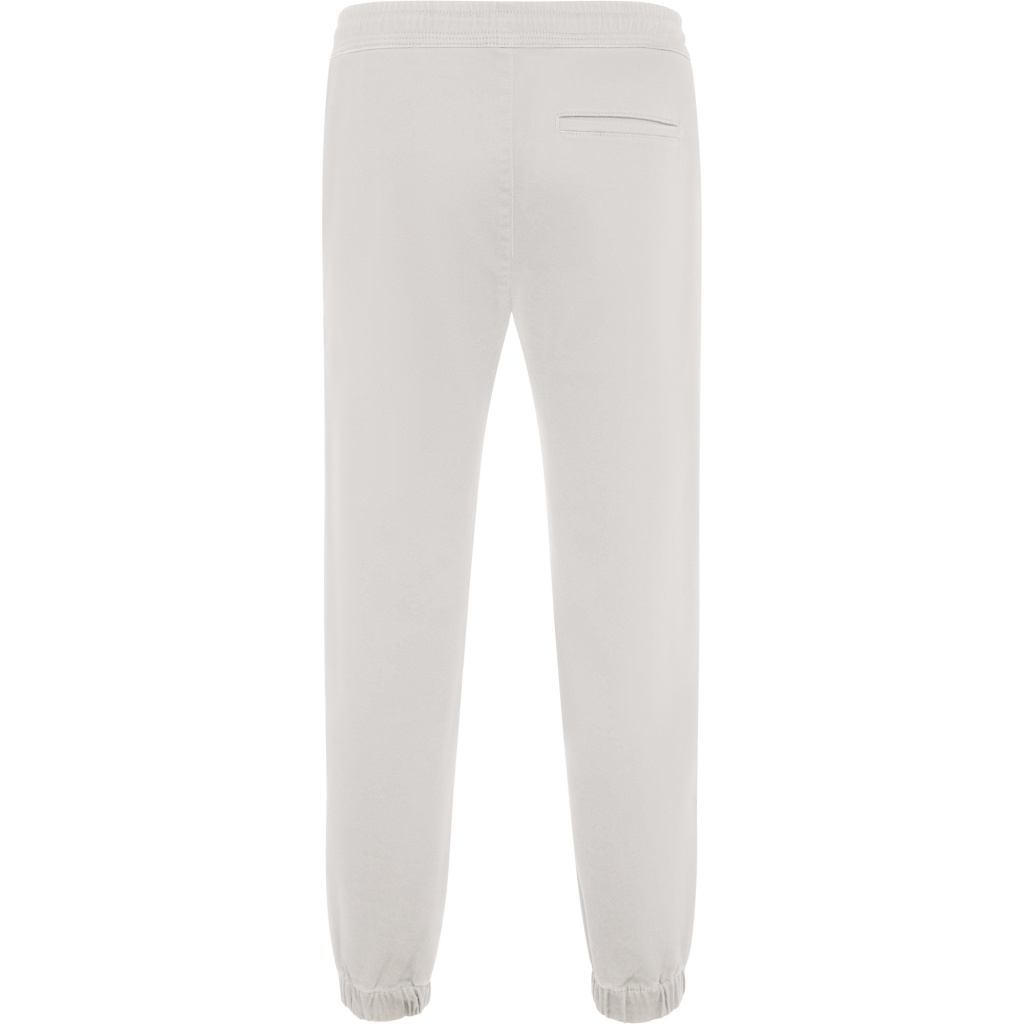 Spodnie dresowe z elastycznym pasem i nogawkami. Okrągły ściągacz po wewnętrznej stronie pasa. Kieszenie boczne i jedna tylna wpuszczana kieszeń. Dekoracyjne zaszewki na wysokości kolan.