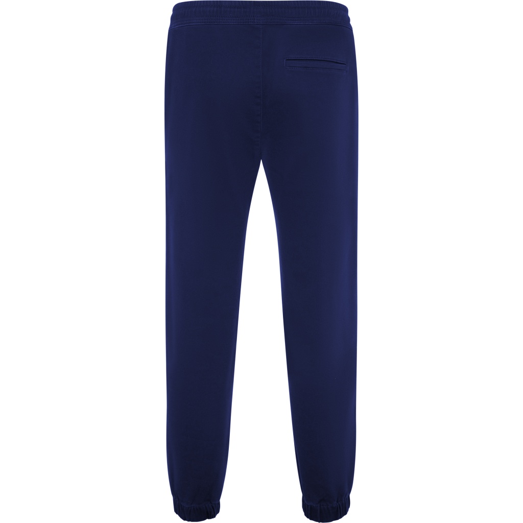 Spodnie dresowe z elastycznym pasem i nogawkami. Okrągły ściągacz po wewnętrznej stronie pasa. Kieszenie boczne i jedna tylna wpuszczana kieszeń. Dekoracyjne zaszewki na wysokości kolan.
