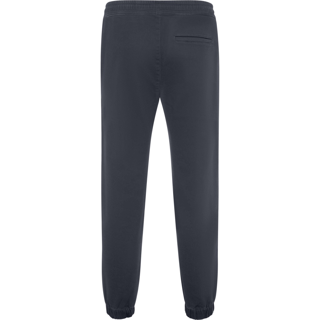 Spodnie dresowe z elastycznym pasem i nogawkami. Okrągły ściągacz po wewnętrznej stronie pasa. Kieszenie boczne i jedna tylna wpuszczana kieszeń. Dekoracyjne zaszewki na wysokości kolan.