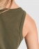Koszulka damska na ramiączkach z prążkowanego materiału. Kołnierz i wycięcia na ramionach z szerokim wykończeniem z tego samego materiału, wzmocnione podwójnym szwem. Dół z podwójnym szwem.