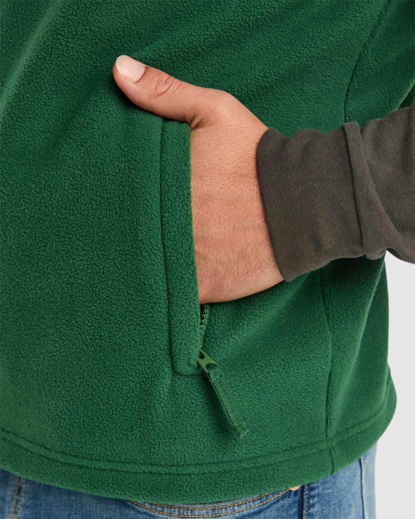 Kamizelka polarowa z zamkiem błyskawicznym i wysokim kołnierzem. Kieszenie z zamkiem błyskawicznym zintegrowane z bocznymi szwami. Taśma kryjąca szwy. Wszystkie elementy  są w dopasowanym kolorze. Boczne ściągacze po wewnętrznej stronie.