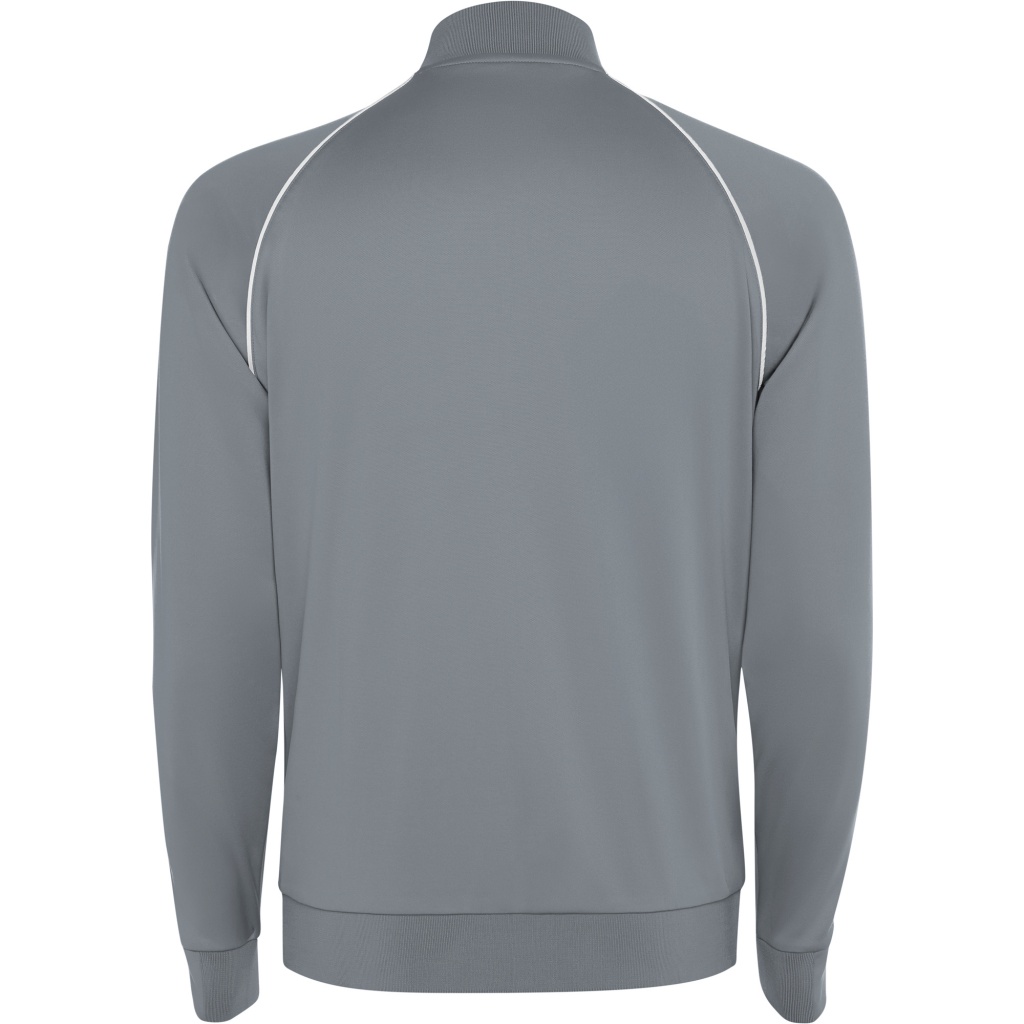 Bluza sportowa z wysokim dekoltem, raglanowymi rękawami i zamkiem błyskawicznym z przodu. Prążkowane obszycie, kołnierz i mankiety 1x1. Miękka taśma kryjąca przeszycie na karku z głównej tkaniny. Tylny dekolt i mankiety wykonane z głównej tkaniny. Odblaskowe lamówki na raglanowych szwach z tyłu i z przodu.