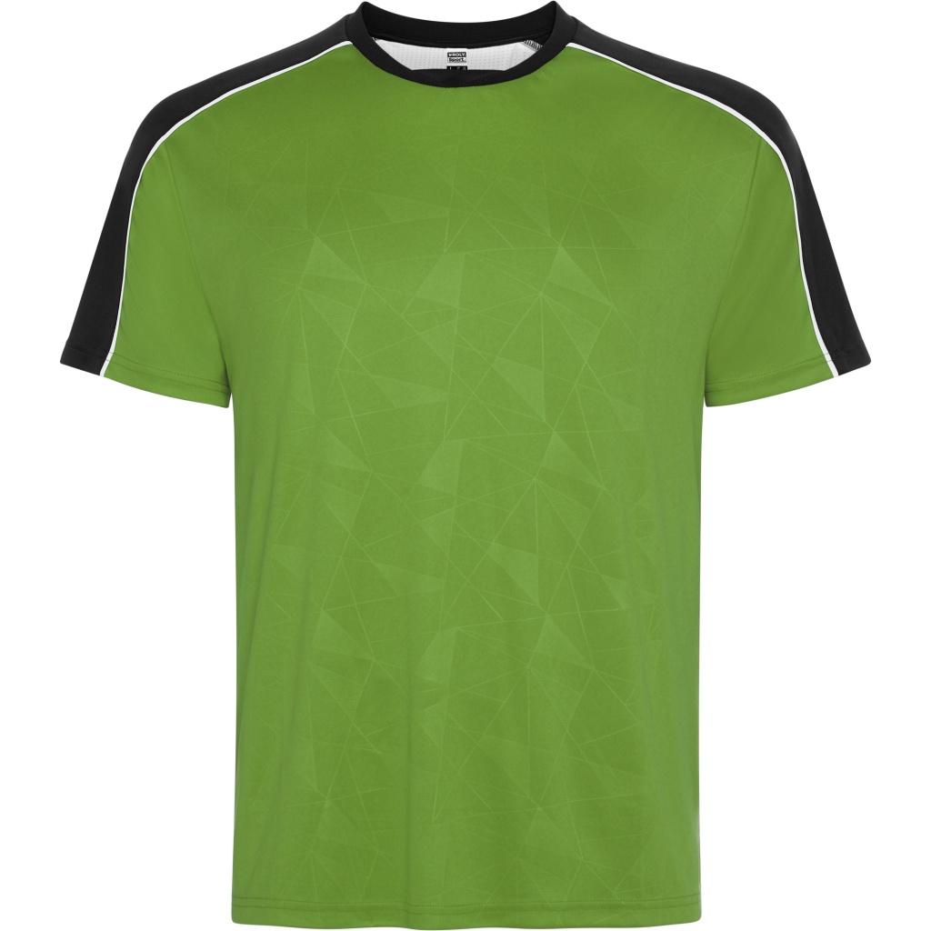 Nadruk na przednim panelu. Lamówka na raglanowych szwach rękawów. Detale z tkaniny siatkowej na środku pleców.