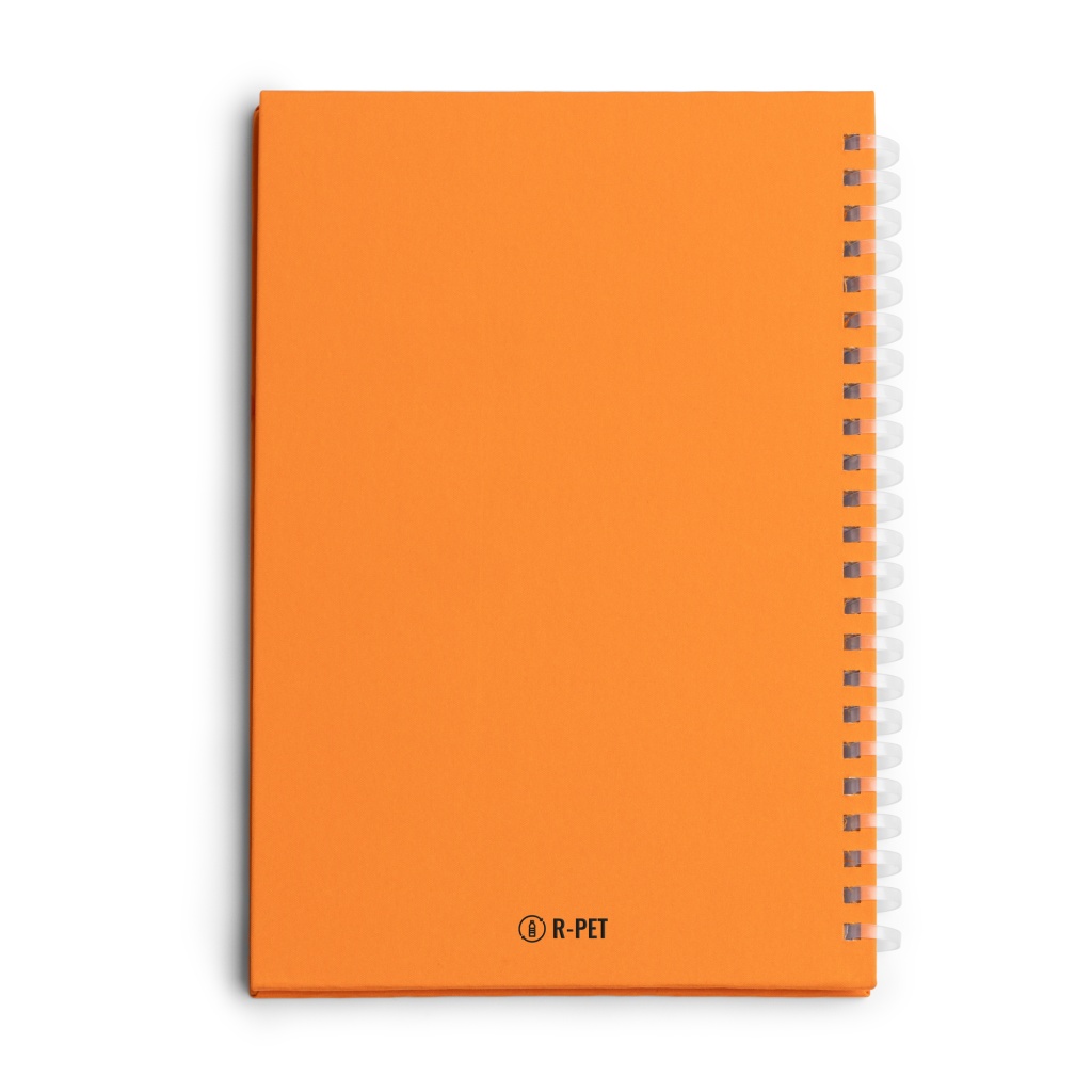 Zeszyt A5 z elastycznymi pierścieniami wykonanymi z tkaniny RPET. Posiada sztywną okładkę wykonaną z poliestru RPET pochodzącego z recyklingu i 90 arkuszy w kratkę.