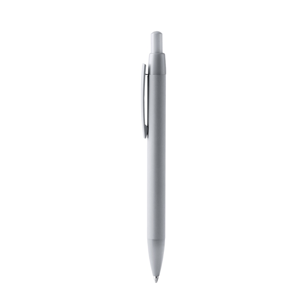 Długopis wykonany z aluminium pochodzącego z recyklingu z przyciskiem i klipsem. Posiada gumowany korpus, dzięki czemu jest on miękki i miły w dotyku. Przycisk i detale są w kolorze pasującym do korpusu. Wkład Jumbo z tuszem w kolorze niebieskim.