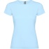Dopasowana koszulka damska. Zaokrąglony, Dwuwarstwowy ściągacz przy szyi, typowo damski fason. Wzmocnione, kryte szwy przy kołnierzyku i na ramionach, szwy boczne.