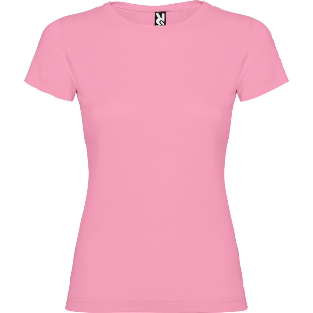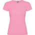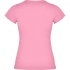 Dopasowana koszulka damska. Zaokrąglony, Dwuwarstwowy ściągacz przy szyi, typowo damski fason. Wzmocnione, kryte szwy przy kołnierzyku i na ramionach, szwy boczne.