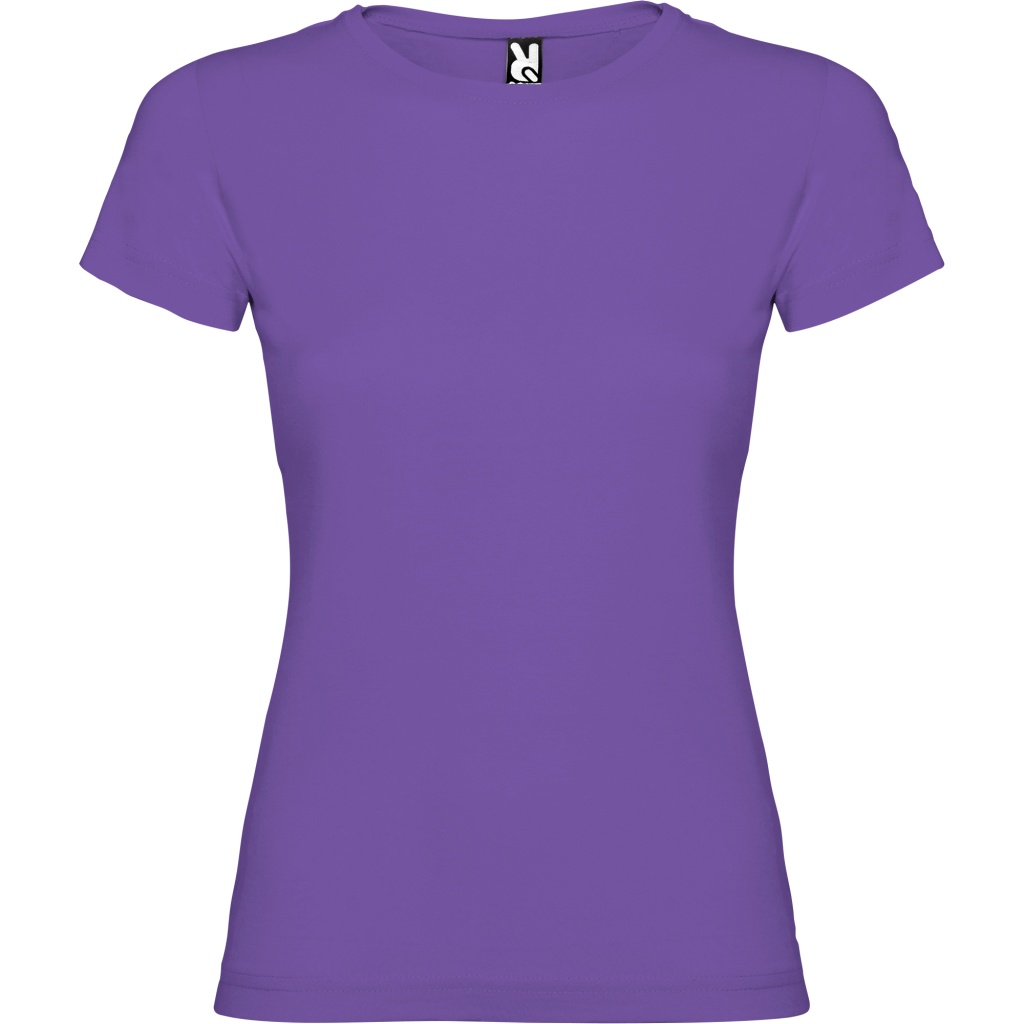 Dopasowana koszulka damska. Zaokrąglony, Dwuwarstwowy ściągacz przy szyi, typowo damski fason. Wzmocnione, kryte szwy przy kołnierzyku i na ramionach, szwy boczne.