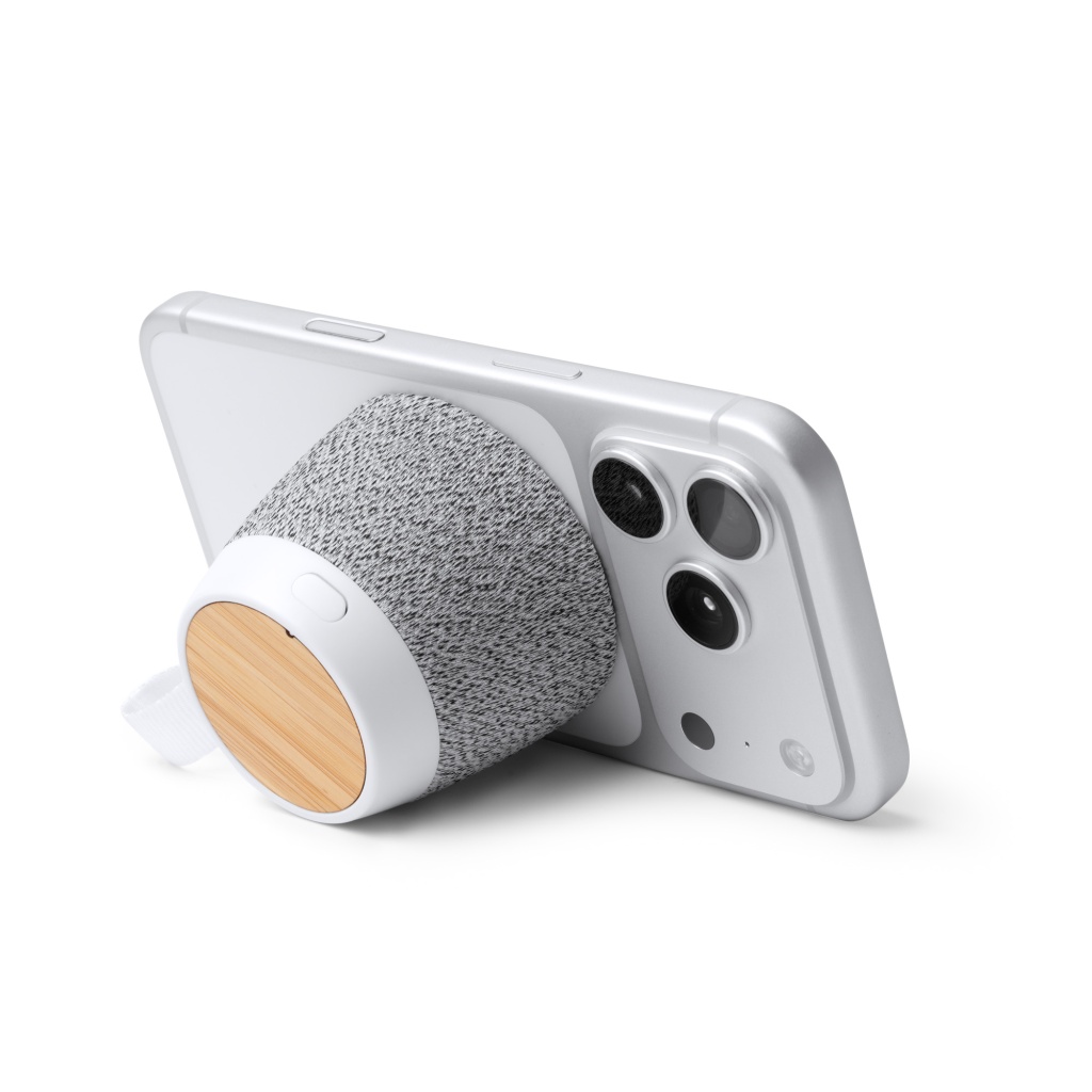 • MONARK - Głośnik z obudową z RPET i bambusa z pierścieniem magnetycznym do smartfona